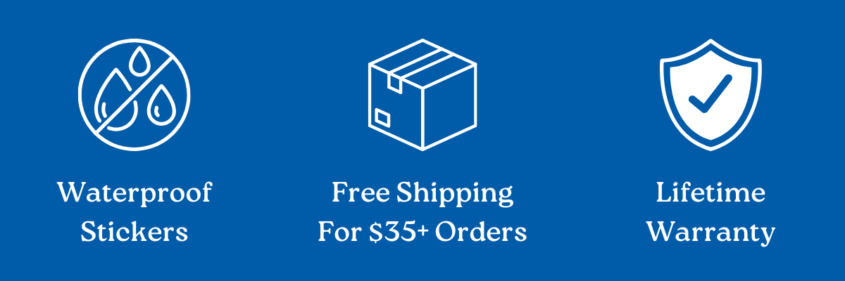 This sticker is waterproof, dishwasher safe, and comes with a lifetime warranty.